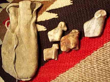 I stayed with my friend from grad school who happens to live 3 miles from The Dye Works! He is a Lakota Medicine Guy, one of my best friends for some 30 years now as we both got our Master's in Tibetan Language at Indiana U in the early 70s. A photo is attached of very old Navajo sheep fetish stones which came from a Navajo man in Mexico via a Yaqui Medicine Man then to my Lakota Medicine Guy friend, then to me for now. These stones are kept in the pollen bag by the owner as good luck and prosperity as these are the sheep of the Four Directions, of course! They are genuine spiritual ethnographic fethishes. The bag is their home and has pollen embedded inside it. Looking SW to The Navajo Rez and Weaving In Beauty -- Indy |