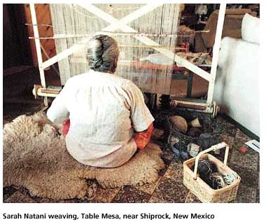 "Weaving, it's part of the culture. If you're a troubled person, if you sit down to your weaving, your bad feeling all goes away and the good one comes in. Then you start thinking about your pattern, and when you have a real fine and very good wool to work with, it really builds up your design. The pattern comes to you naturally." -- Sarah Natani, weaver and spinner |
